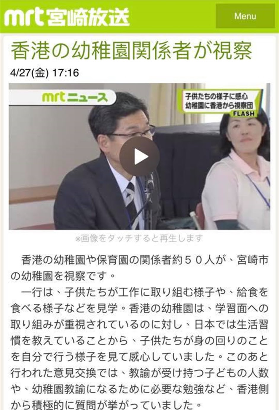 2018年4月參訪日本宮崎清武みどり幼稚園,獲當地電視台採訪